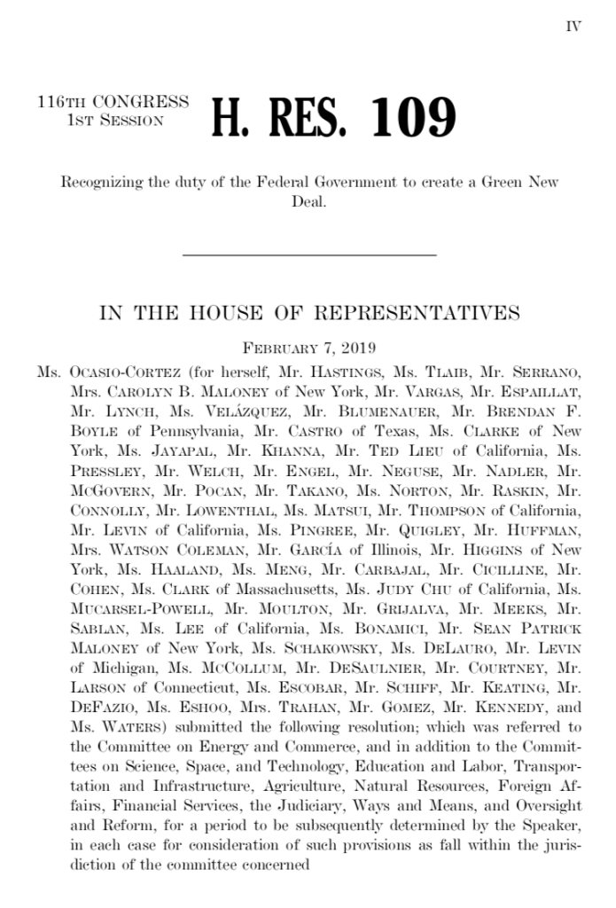 The Green New Deal resolution: read or listen to Alexandria Ocasio-Cortez reading the entire GND on the House floor in February 2020